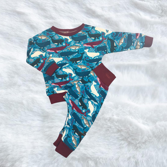These adorable handmade jumper/trouser feature a whale print. Thoughtfully designed for comfort and everyday wear, they’re perfect for playtime, outings, or cosy days at home.