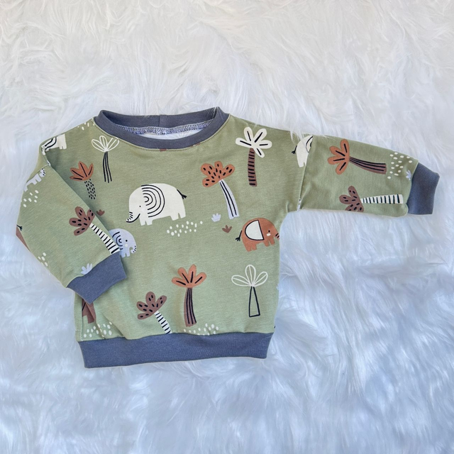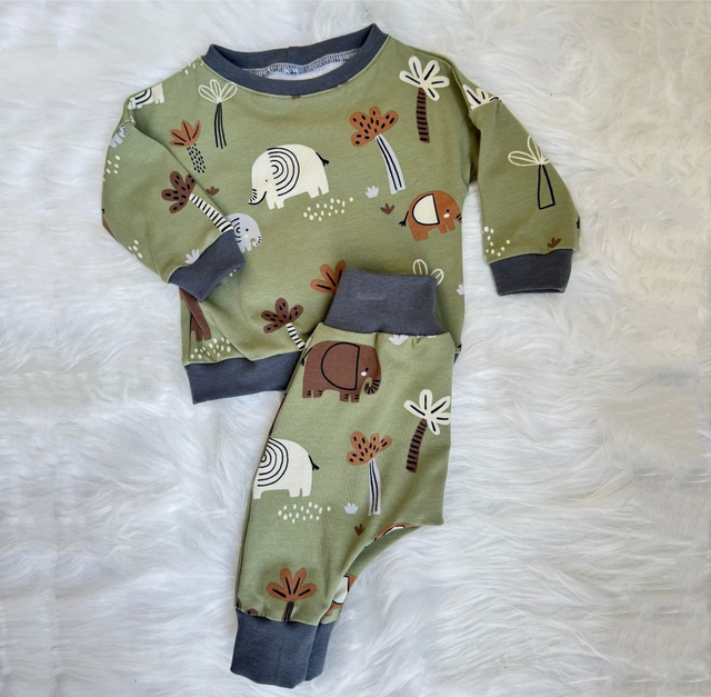 These adorable handmade jumper/trouser feature a jungle print. Thoughtfully designed for comfort and everyday wear, they’re perfect for playtime, outings, or cosy days at home.