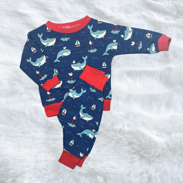 These adorable handmade jumper/trouser feature a whale print. Thoughtfully designed for comfort and everyday wear, they’re perfect for playtime, outings, or cosy days at home.